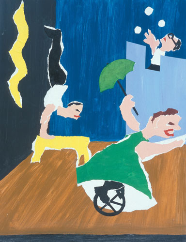 Drawings made at circus performances formed the basis for these acrylic collages, which were exhibited at The Boundary Gallery, London.
